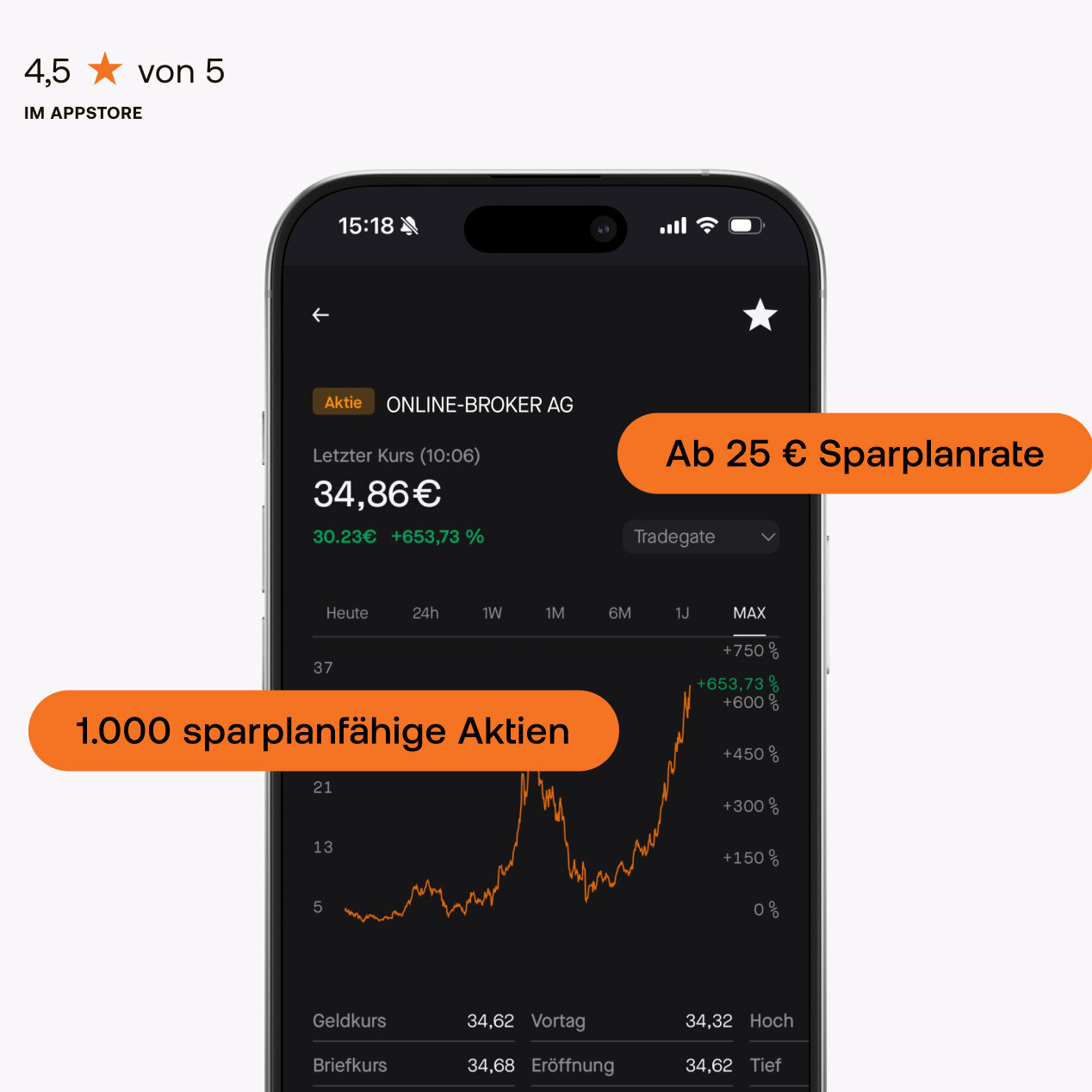 | Auswahl | Auswahl aus 1.000 sparplanfähigen Aktien aus Deutschland, Österreich, Europa und der Welt. |